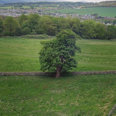 View from the watchtower at Craigmiller Castle. I love this tree and the stone fence that is interrupted. It made it to the coveted iphone home screen wallpaper. #craigmillercastle #scotland #stonefence