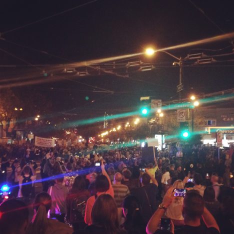 The ANSWER protest marched up Market Street crashing what was an inspiring gathering at Harvey Milk Plaza with a: “Bernie-told-you-so/Hillary-shame-game”. The Castro boo’d them back down the yellow brick road. Were these the registered Democrats who did not vote? #election2016 #trumpprotest #trumpprotestsf #castrosf #cnn #sanfranciscoprotest #trump #countrydivided #partydivided
